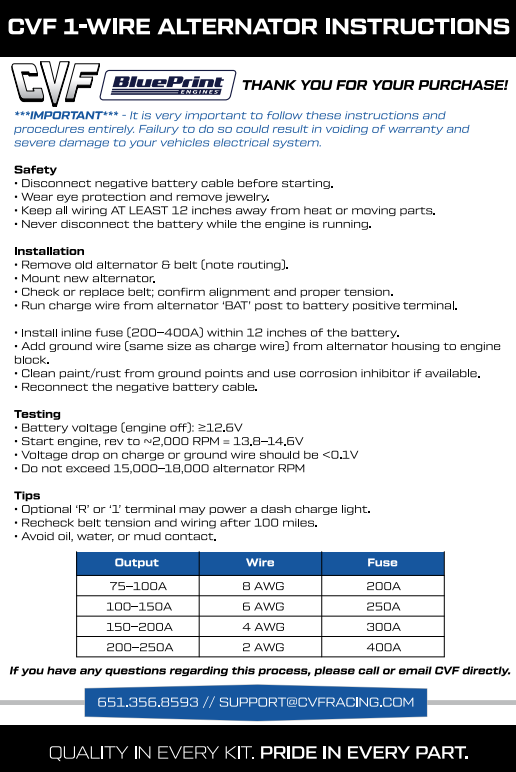 CVF 1-wire Alternator Instructions